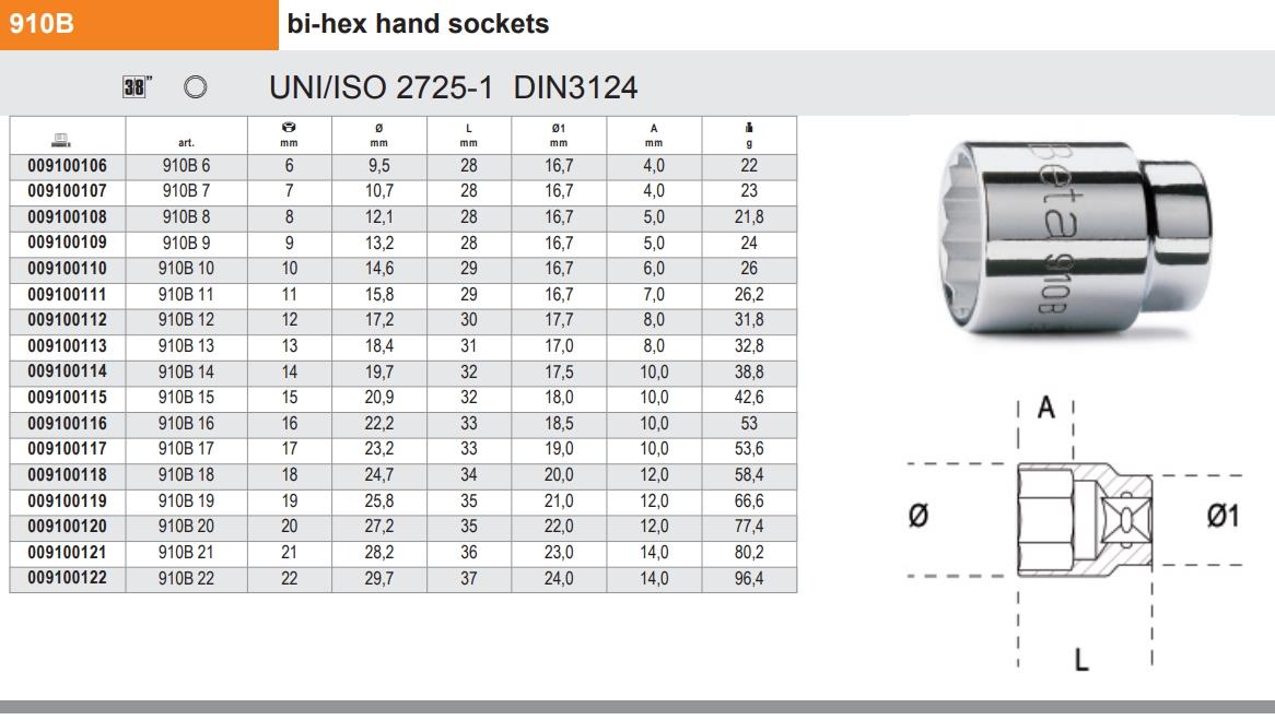 Beta  910B-6  Lokma  3/8  Ürün  Kodu  009100106