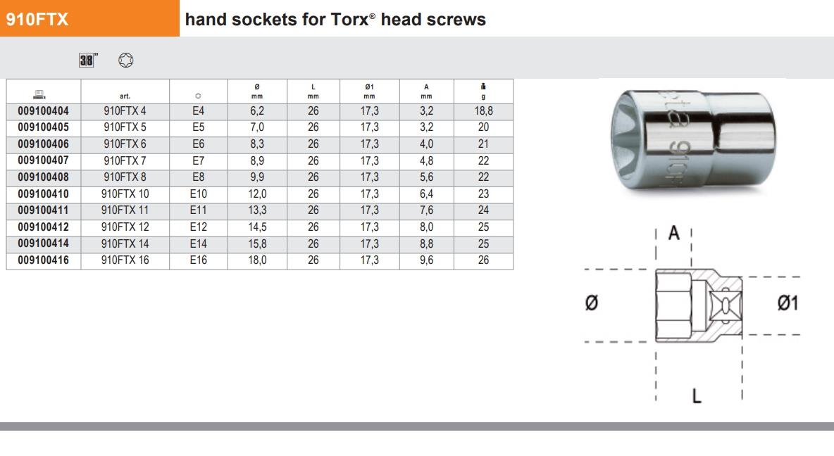 Beta 910Ftx-4 Torx Lokma 3/8 Ürün Kodu 009100404