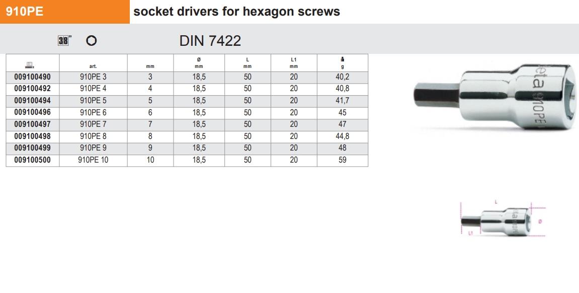 Beta 910Pe-10 Allen Lokma 3/8 Ürün Kodu 009100500