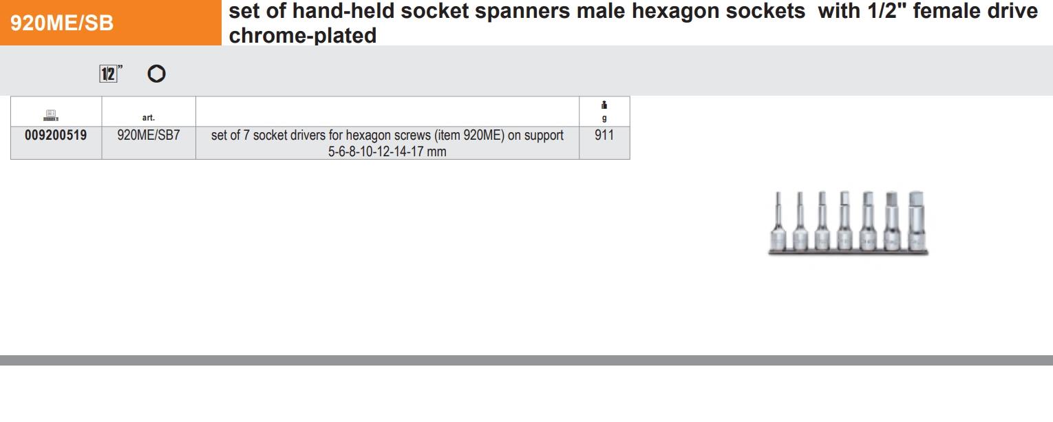 Beta 920Me/Sb7 Allen Lokma Takım Ürün Kodu 009200519