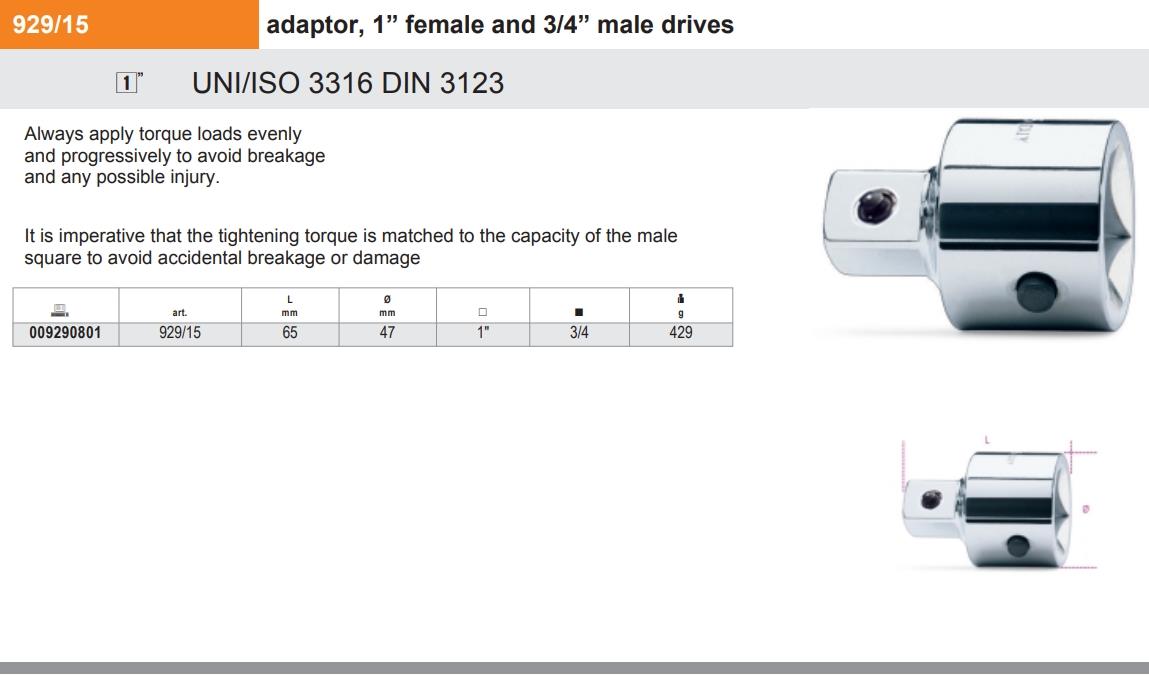 Beta 929/15 Adaptör 1″-3/4 Ürün Kodu 009290801