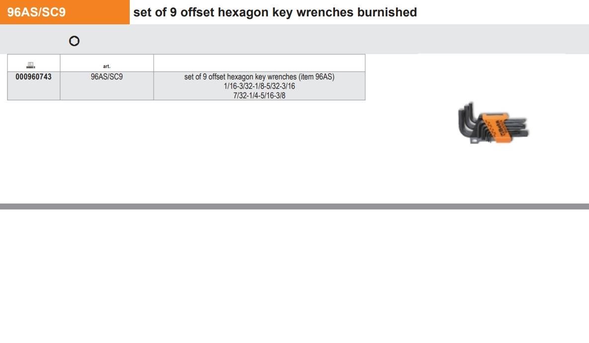Beta 96As/Sc9″ Allen Takım Ürün Kodu 000960743