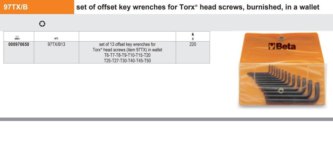 Beta 97Tx/B13 Torx Allen Takım Ürün Kodu 000970650