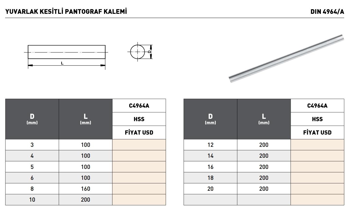 Fett  18X200mm  Pld  Dın4964A  Hss  Yuvarlak  Kesitli  Pantograf  Kalemi