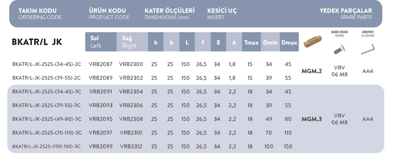 Fett BKATR/L-JK – 2525 – (70-110) – 3C..t-max:110 Vorgen Dış Çap Kanal Açma Takımı