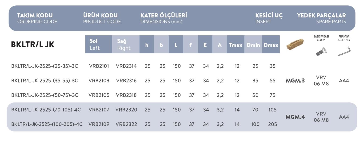 Fett BKLTR/L-JK – 2525 – (25-35) – 3C..t-max:35 Vorgen Dış Çap Kanal Açma Takımı