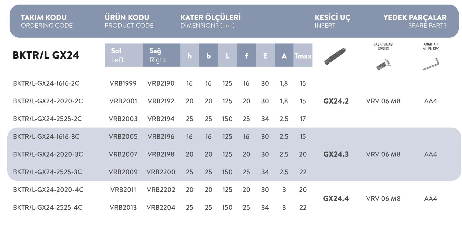 Fett BKTR/L – GX24 – 2525 – 2C..t-max:15 Vorgen Dış Çap Kanal Açma / Kesme Kateri