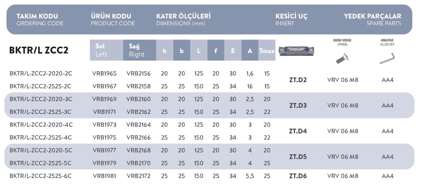 Fett BKTR/L – ZCC2 – 2525 – 3C..t-max:22 Vorgen Dış Çap Kanal Açma / Kesme Kateri