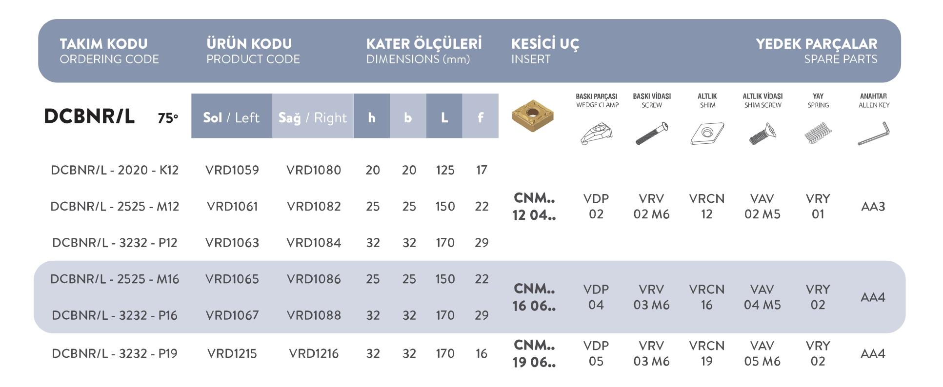 Fett DCBNR/L – 3232 – P 16 Vorgen D Sistem Dış Torna Kateri