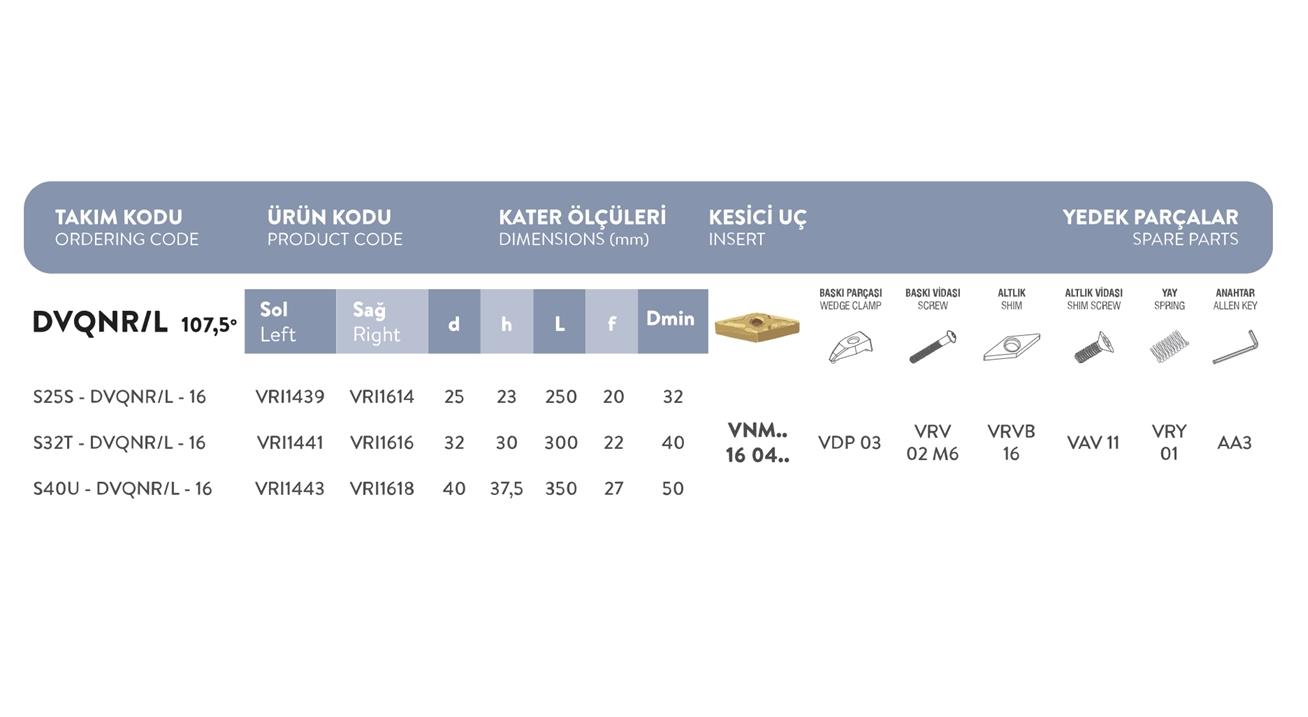 Fett DVQNR/L – 2525 – M 16 Vorgen D Sistem Dış Torna Kateri