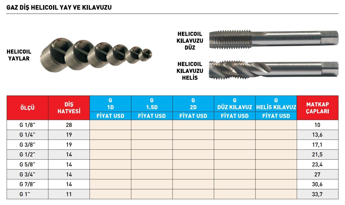 Fett G 1/8”-28 Pld Gaz Diş 1D Helicoil Yay (100’lü)