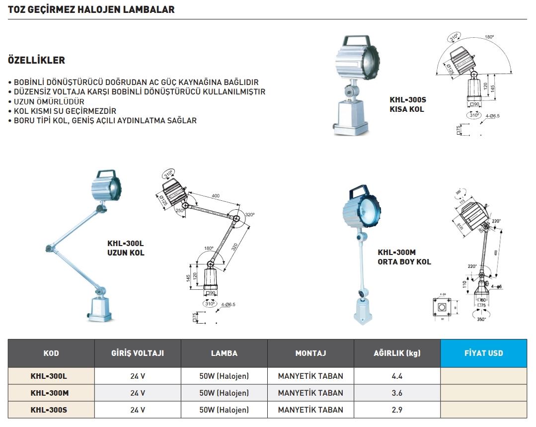 Fett Krasnic Orta Kol Toz Geçirmez Halojen Lamba Khl-300M