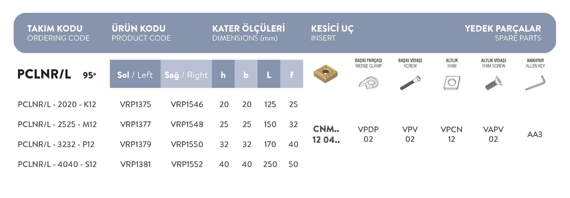 Fett PCLNR/L – 3232 – P 12 Vorgen P Sistem Dış Torna Kateri