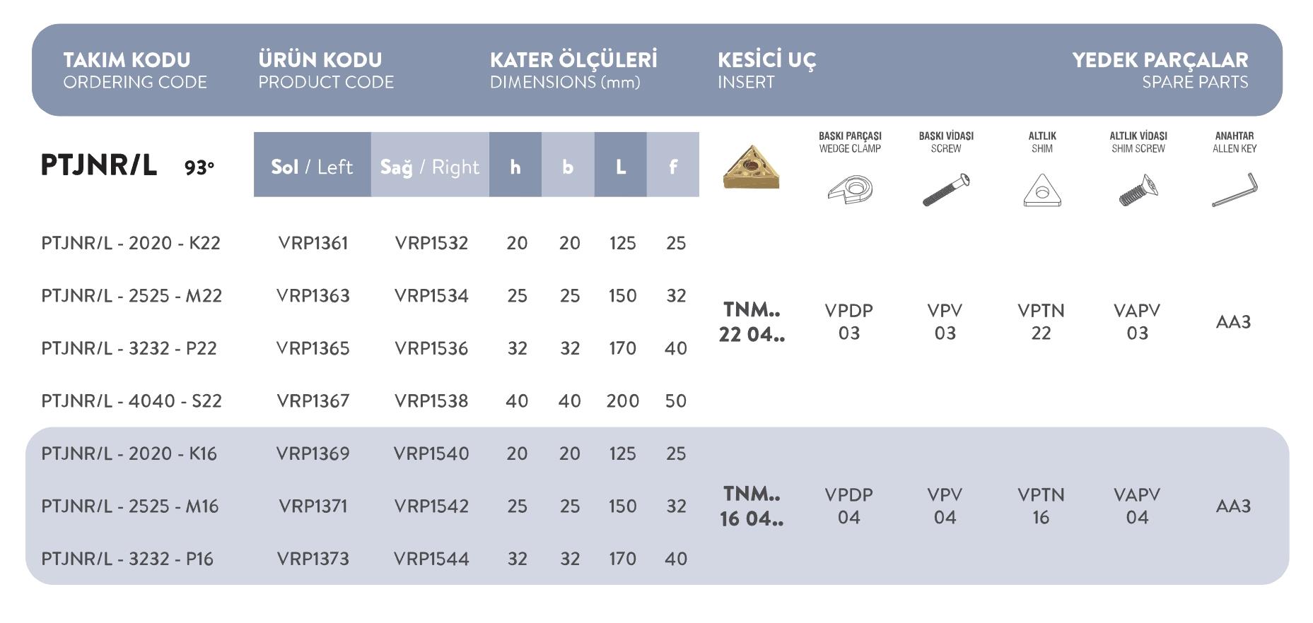 Fett PTJNR/L – 4040 – S 22 Vorgen P Sistem Dış Torna Kateri
