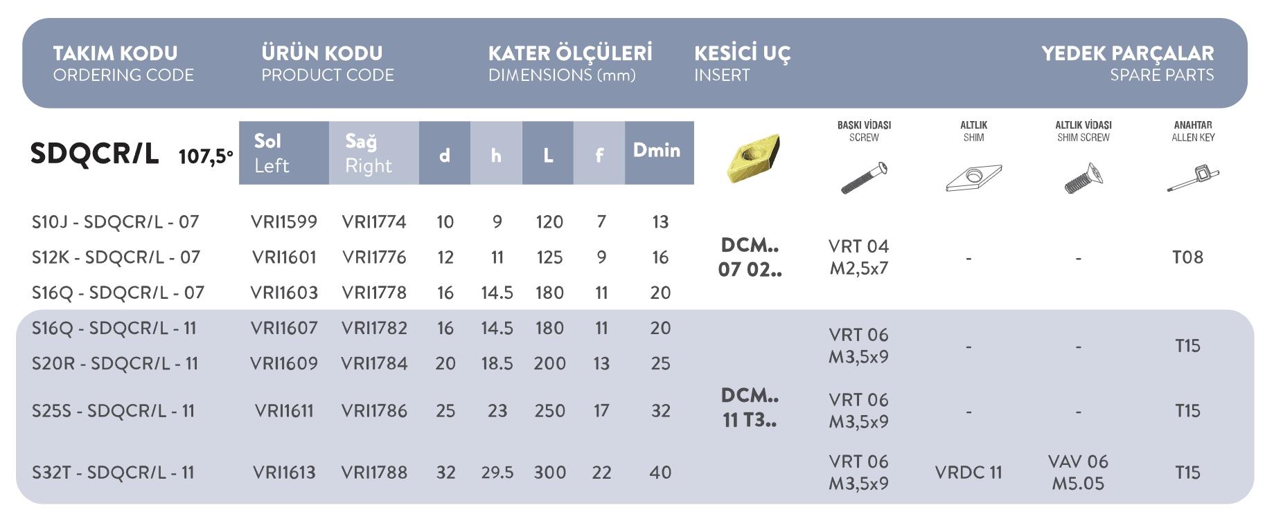 Fett S32T – SDQCR/L – 11 Vorgen S Sistem Delik Torna Kateri