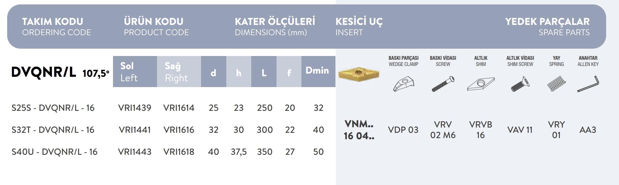 Fett S50V – DVQNR/L – 16 Vorgen D Sistem Delik Torna Kateri