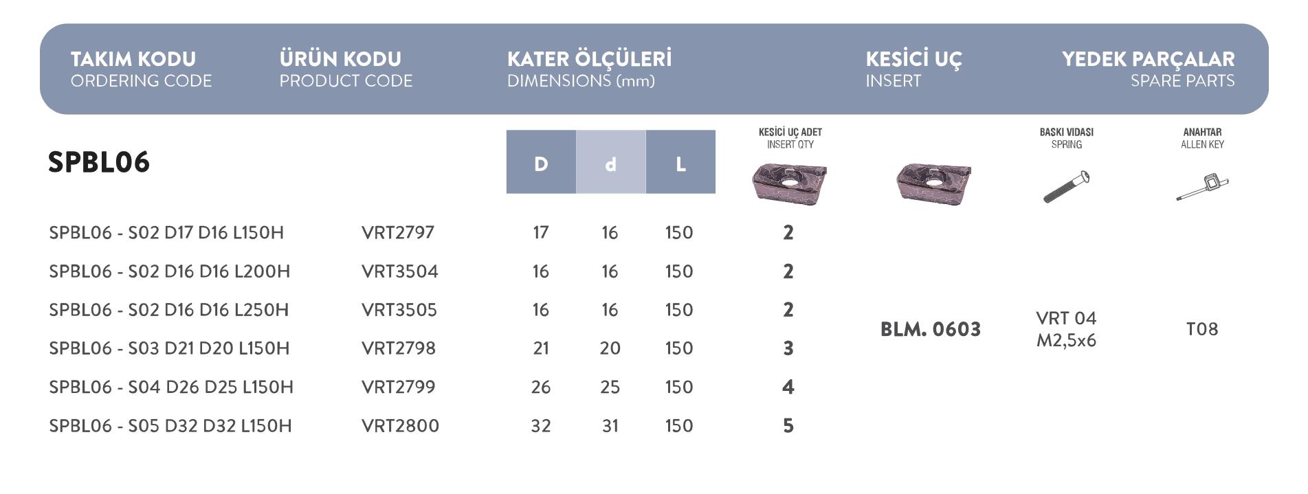 Fett SPBL06 – S03 D21 D20 L150H Vorgen Parmak Freze Takımı