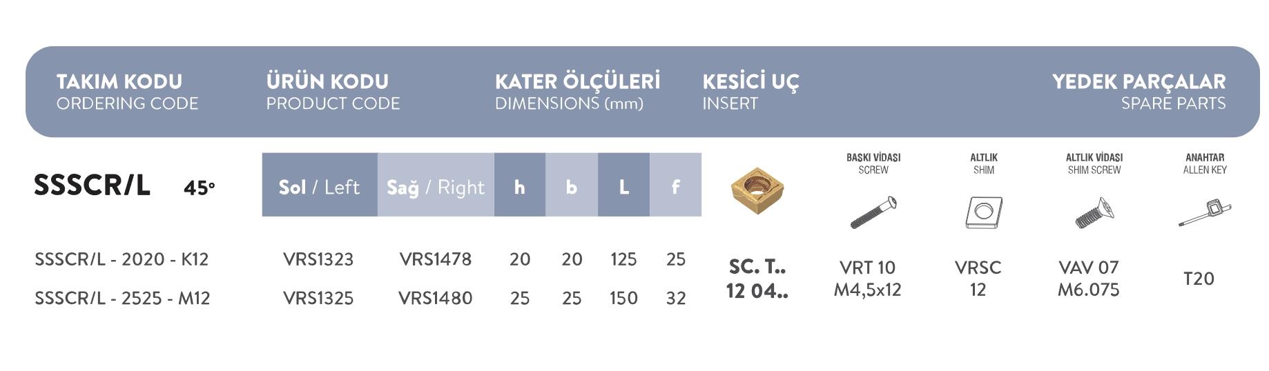 Fett SSSCR/L – 2525 – M 12 Vorgen S Sistem Dış Torna Kateri