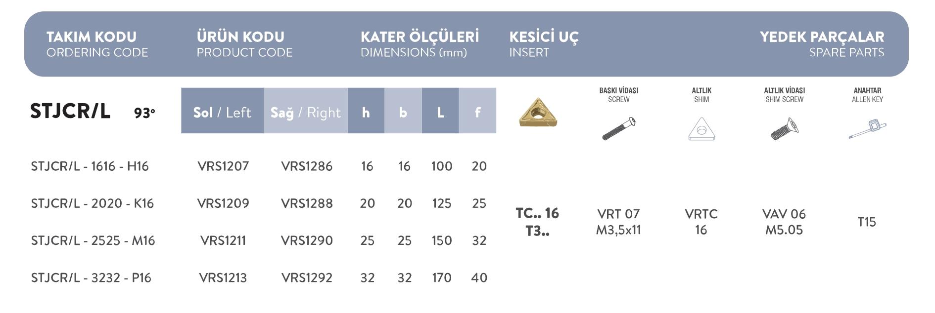 Fett STJCR/L – 2525 – M 16 Vorgen S Sistem Dış Torna Kateri
