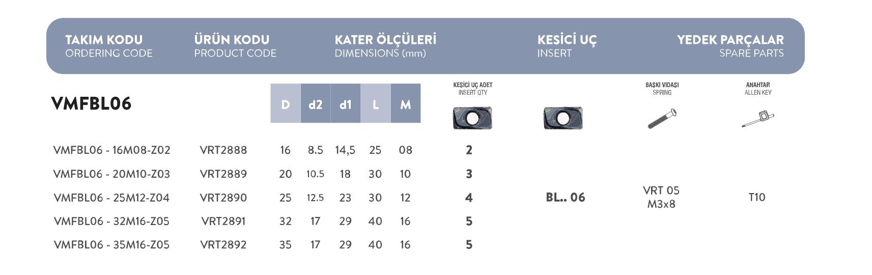 Fett VMFBL06 – 16 M08-Z02 Vorgen Değiştirilebilir Uçlu Modü Freze