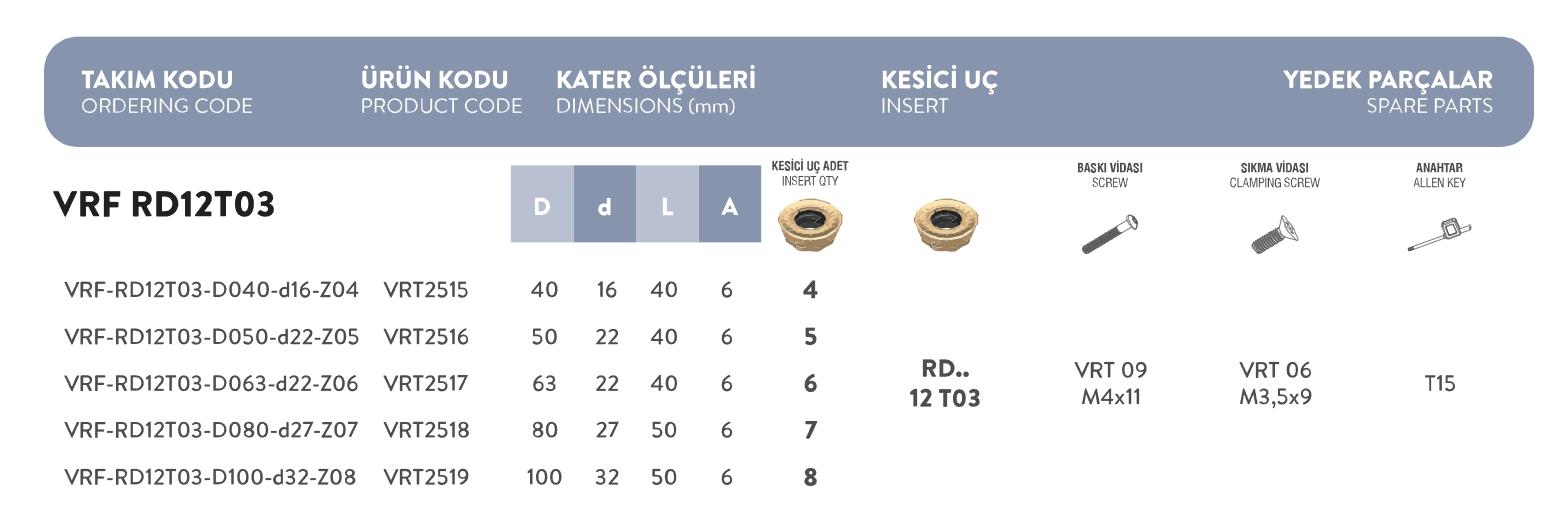 Fett VRF – RD12T03 – D040 – D16 – Z04 Vorgen Freze Takımı