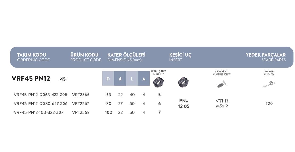 Fett VRF45 – PN12 – D100 – D32 – Z07 Vorgen Freze Takımı