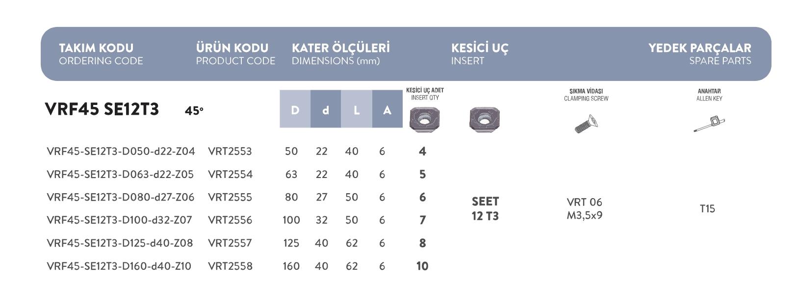 Fett  VRF45  –  SE12T3  –  D100  –  D32  –  Z07  Vorgen  Freze  Takımı