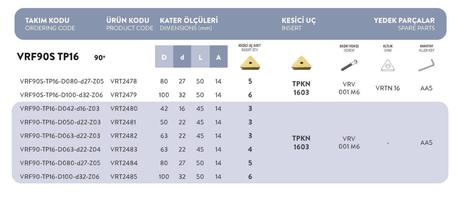 Fett VRF90-TP16-D063-D22-Z03 Vorgen Freze Takımı