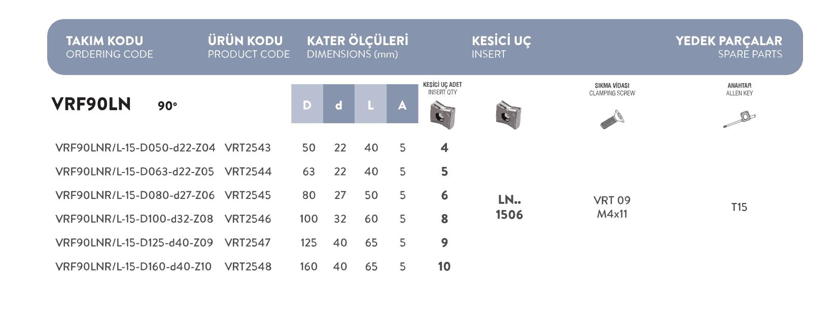 Fett  VRF90LNR/L  –  15  –  D100  –  D32  –  Z08  Vorgen  Freze  Takımı