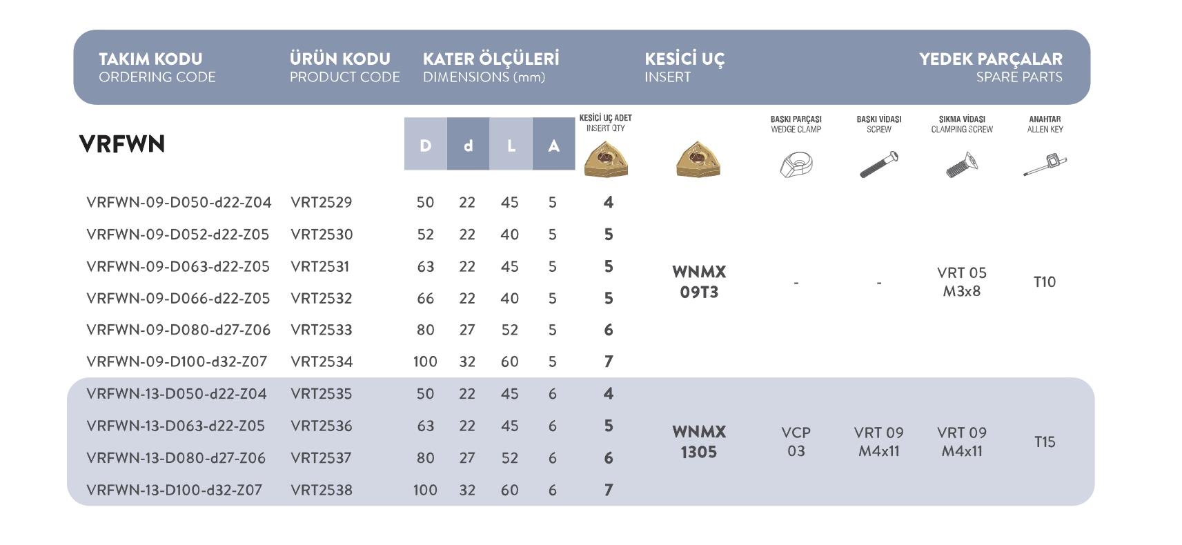 Fett VRFWN – 13 – D080 – D27 – Z06 Vorgen Freze Takımı