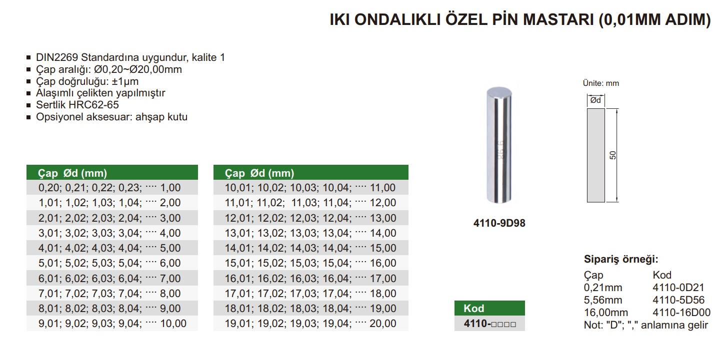 İnsize  12,02mm  Pin  Mastarı  Tekli