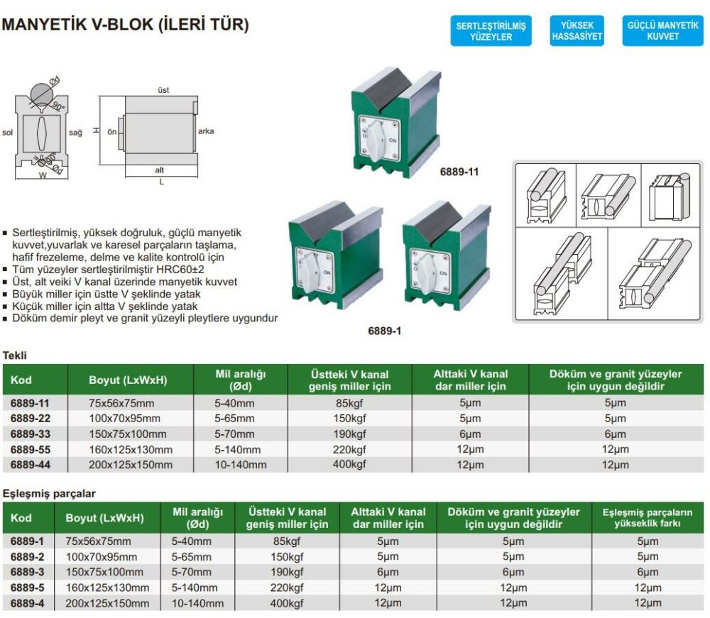 İnsize 150X75X100mm Manyetik V Blok (Tekli), Hassasiyet: 5-70mm