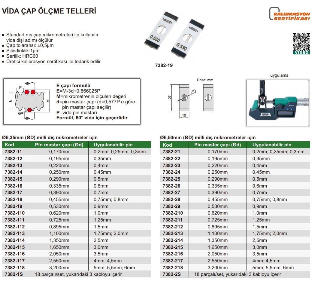 İnsize 1,650mm Diş Adımı Ölçüm Teli (Mikrometre İle Kulanılır) Kod: 7382-115