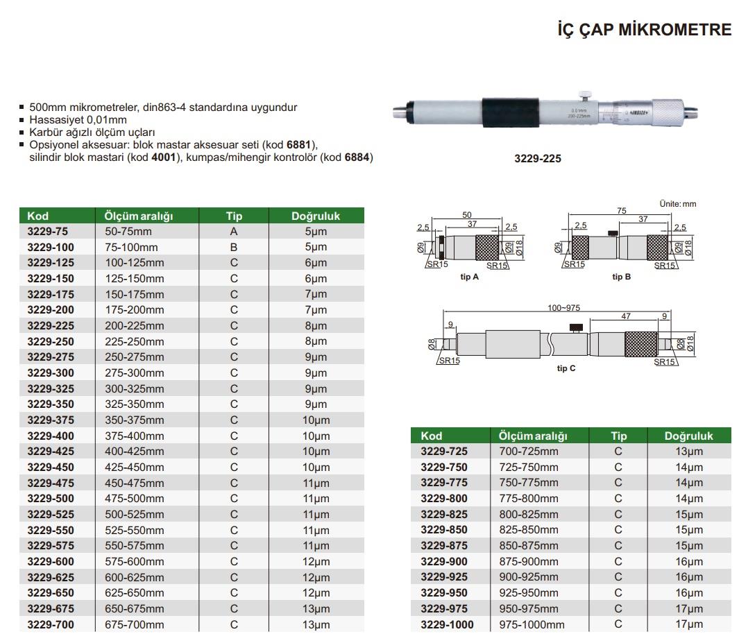 İnsize 575-600mm Delik Mikrometresi / Boru Tip, Hassasiyet: 0.01mm