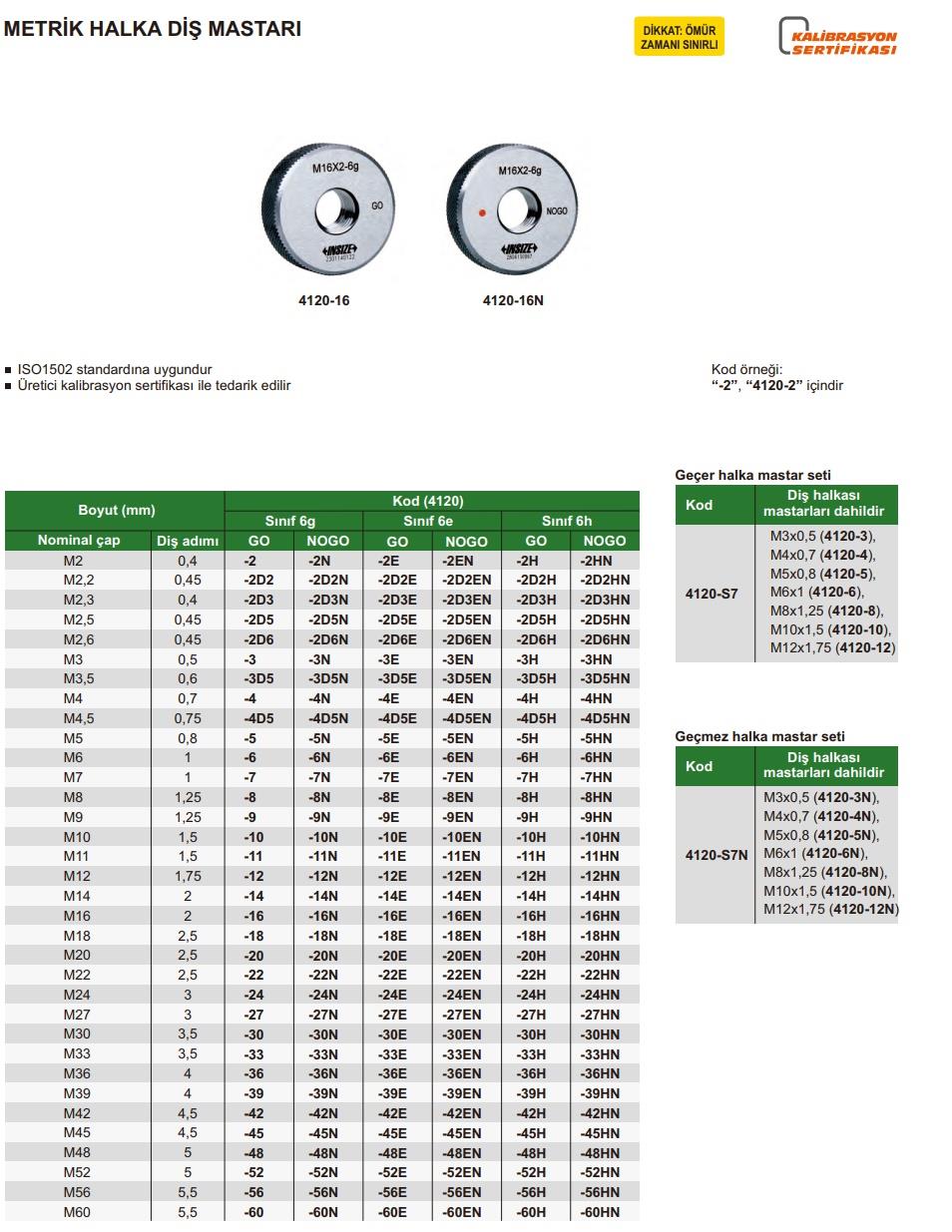 İnsize M39X4 Halka Vida Mastarı Kod: 4120-39EN