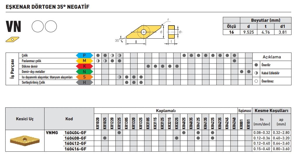 Kraft Vnmg160408-Gf Kr4225 Sert Maden Uç 10’lu